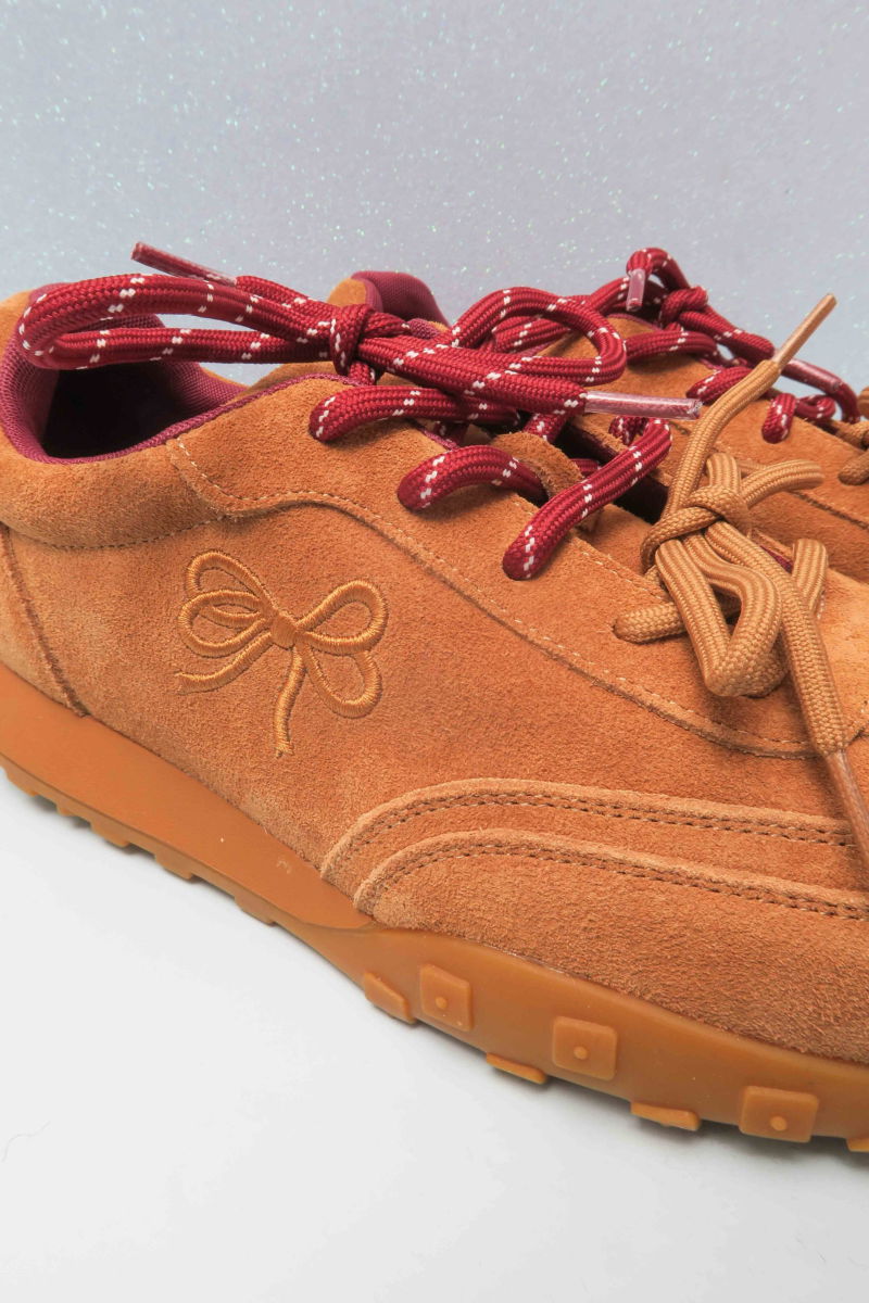 Zapatilla de gamuza con recortes y un moñito bordado a tono en el lateral. Tiene suela trail de caucho con pequeños relieves que otorgan tracción adicional y viene con dos cordones para intercambiar o usar combinados. Cancheras y super cómodas, perfectas para todos los días!